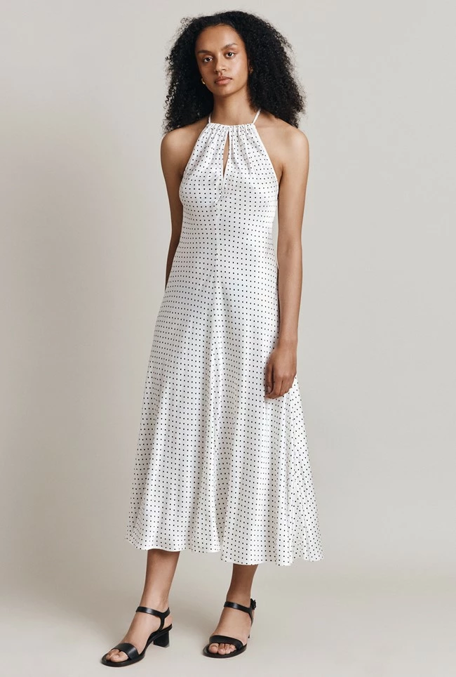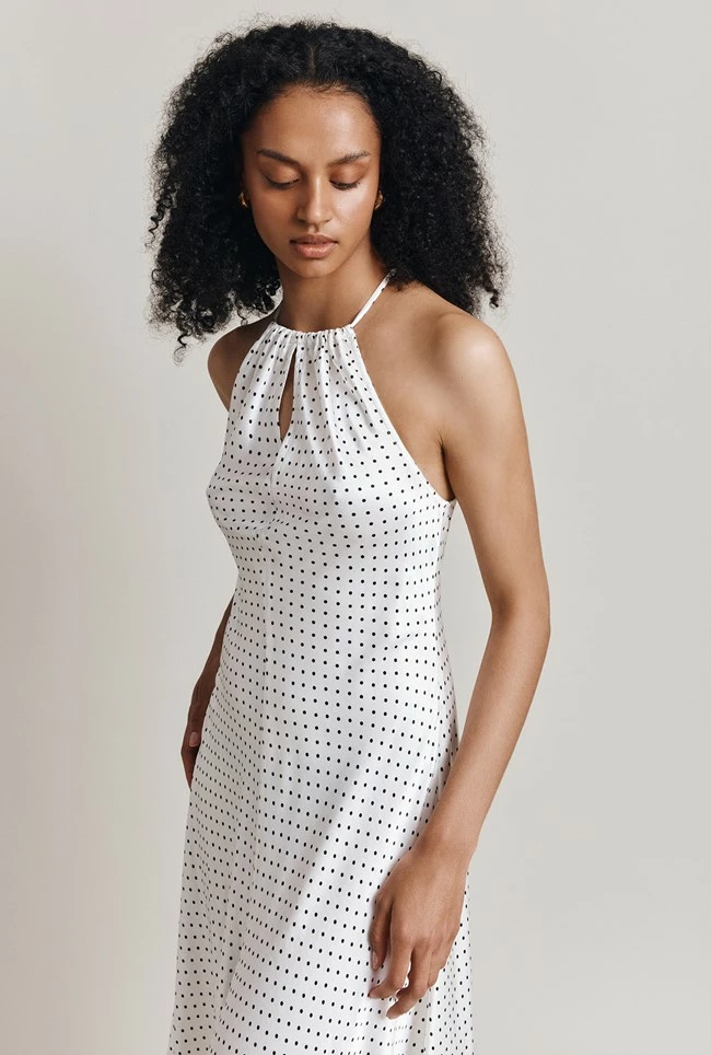 With a racer-style top, our Alena midi dress is crafted from luxurious satin and cut on the bias for a flattering drape. Featuring a key hole neckline Alena is simple yet chic, the perfect all-year-round dress. For the warmer weather, wear yours with sneakers or sandals and in the winter layer over a chunky knit and your favourite boots.