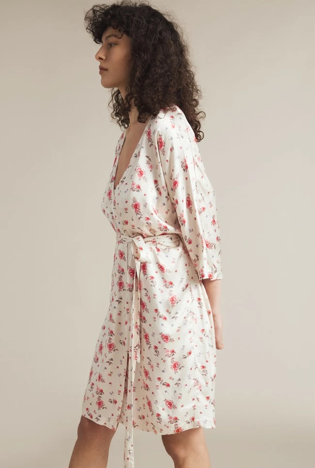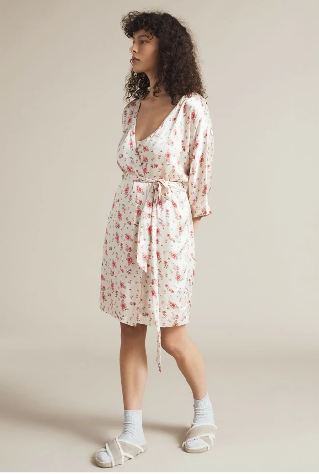 Snug as a bug in a rug. For extra warmth and comfort our Alexa Robe is exactly what you need this season. Made from soft, luxurious satin in a vintage rose pattern, this above the knee robe features on-trend voluminous long sleeves and a flattering V-neckline. The classic robe side tie means you can also wear this robe open if you prefer to layer your night-time outfits. Just think how good you’ll look putting the bins out – it’s a must have.