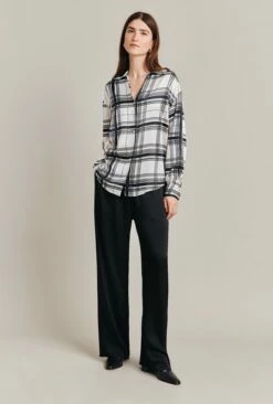 A chic and versatile addition to any wardrobe – Amy is made from high-quality satin and will pair perfectly with jeans or high waisted trousers. The shirt features a dipped rear hem for on-trend twist and has long sleeves with double pearlescent button cuffs.