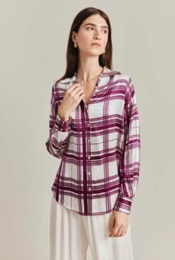A chic and versatile addition to any wardrobe – Amy is made from high-quality satin and will pair perfectly with jeans or high waisted trousers. The shirt features a dipped rear hem for on-trend twist and has long sleeves with double pearlescent button cuffs.
