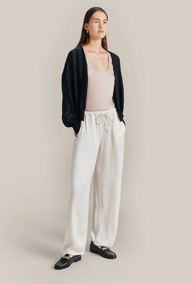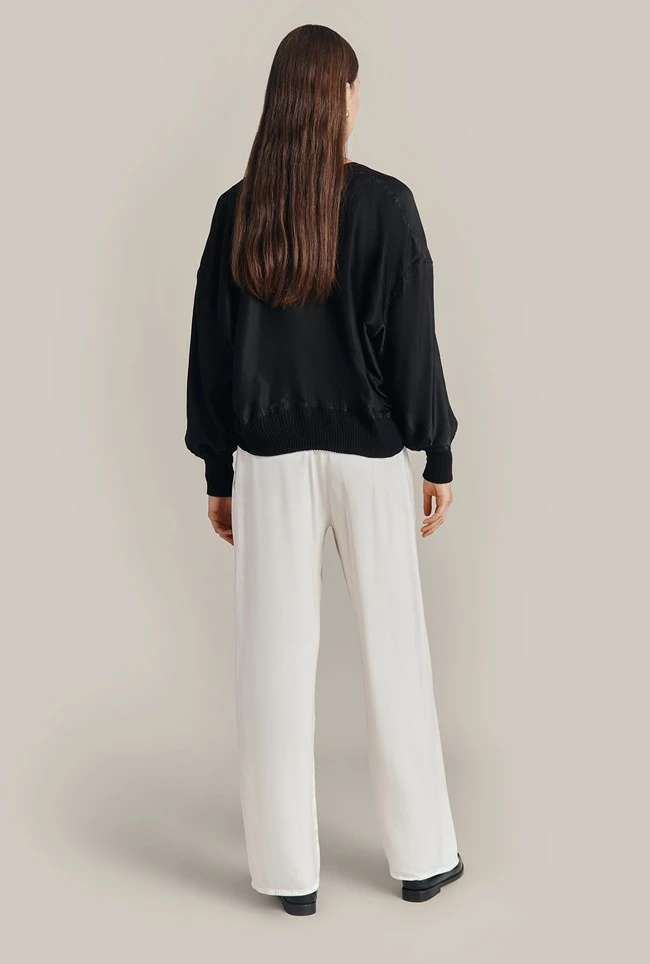 Tap into the bomber jacket trend with Anouk. Made using our sustainable Eco Vero satin, Anouk provides both comfort and style. With an open front and a deep ribbed hemline that hugs the figure and matching cuffs, Anouk will pair perfectly with trousers or jeans.