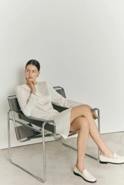 A play on our classic Luna skirt, our Arella navy skirt is cut on the bias in a mini length and crafted in garment-dyed satin so it falls fluidly over the body to create a flattering, form-fitting silhouette. A subtly elasticated waistband ensures comfort. Dress up with a our Jana camisole and heels, or down with a simple tee, denim jacket and trainers – versatility is Arella’s superpower.