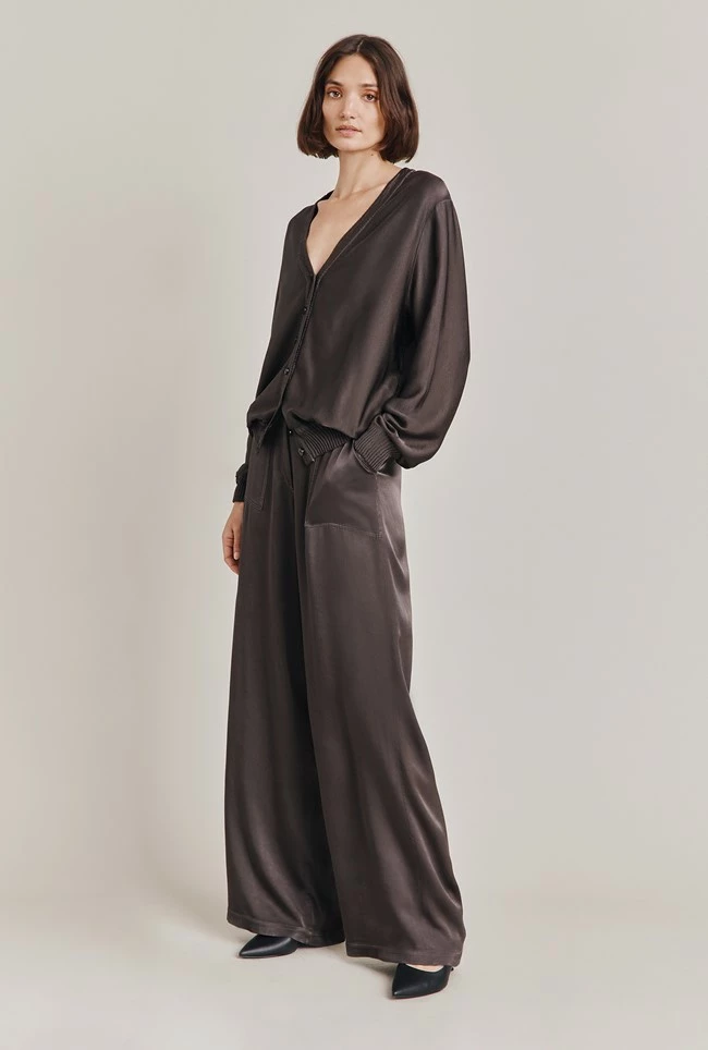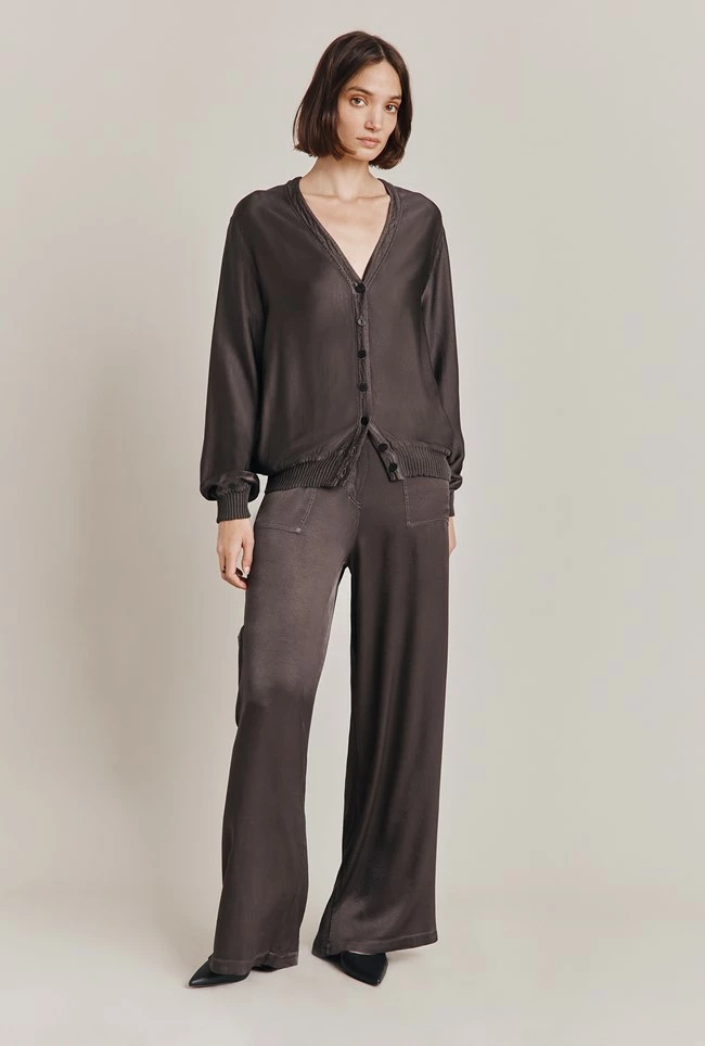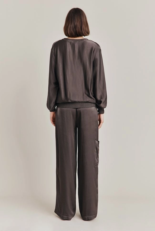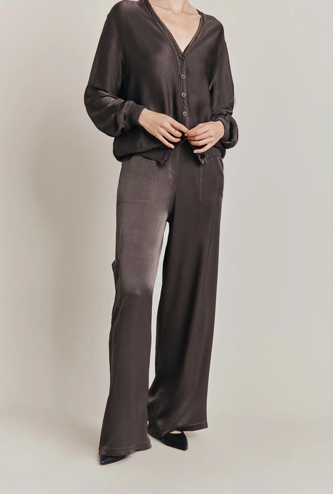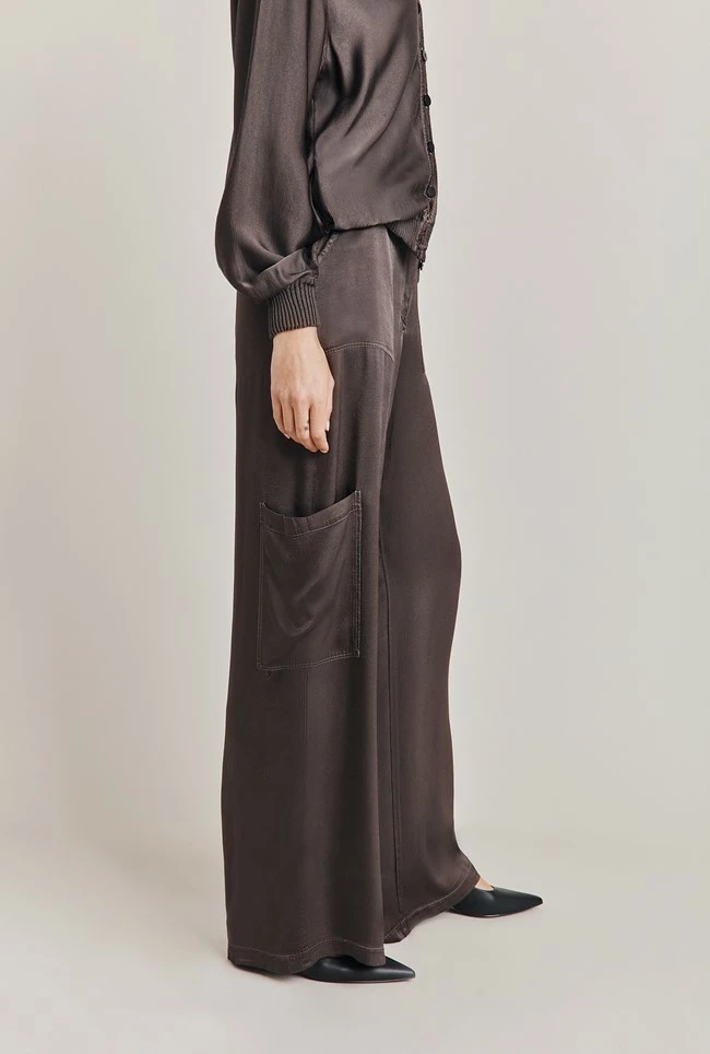 Our trendy, cargo-style Aurora Trousers feature pockets and are slightly flared to create a wider leg. Crafted from our sustainable Eco Vero Satin – soft and stylish in soft blue, complete the look and pair with our Mia Bomber and your favourite sneakers.