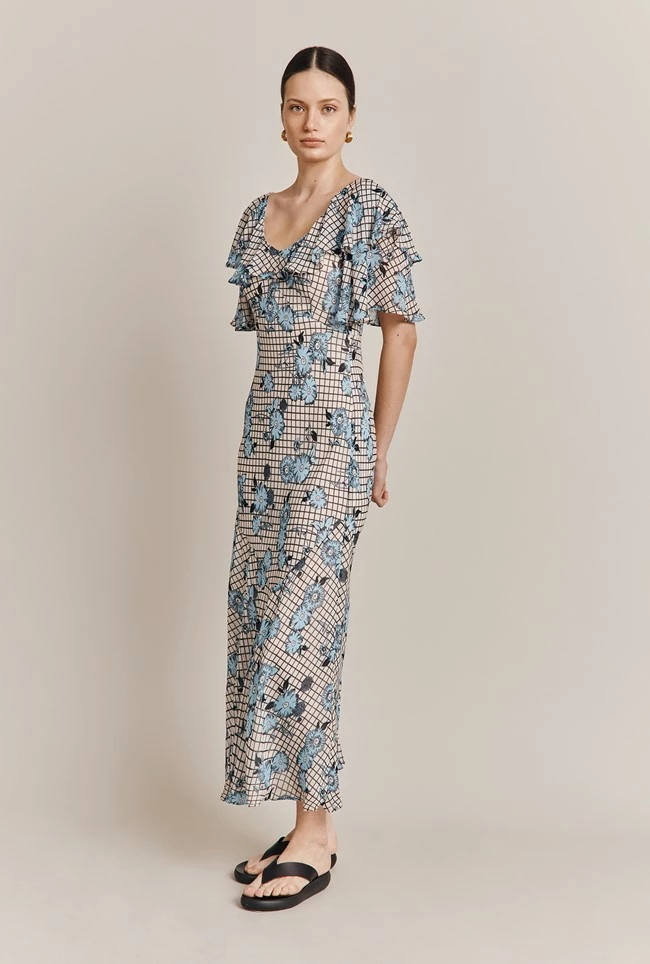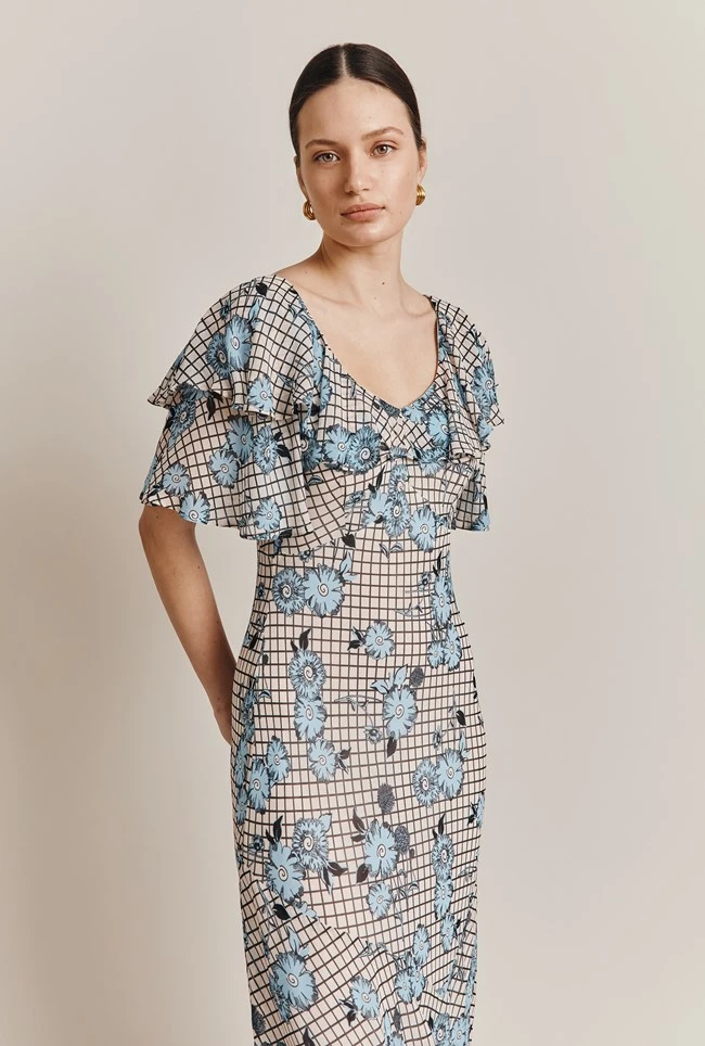 Meet Birdie – our figure flattering midi dress crafted from our signature crepe. A geo-floral mix, we love the feminine bust, shoulder and sleeve ruffles that add volume, while the dress skims the silhouette to create a fit and flare style. Pair with your favourite summer sandals or dress up with heels.