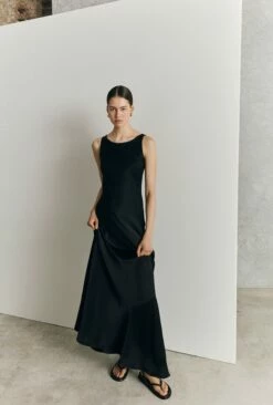 Perfect for occasion dressing this season, Callie is a classic black maxi dress crafted from our signature viscose satin in black. Figure hugging in all the right places, Callie is a fit and flare style with an elegant rounded and scooped neckline. All you need are your favourite heels and a stylish clutch.