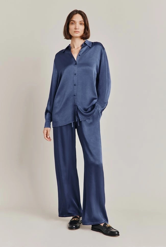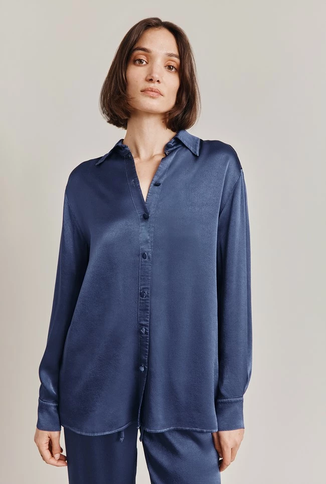 A satin shirt is a must for any smart wardrobe. Crafted from our signature Eco Vero Satin, in an array of colours – Ellie features front placket buttons, a classic collar and cuff detail. Wear yours with our Imogen trousers or our Luna skirt for a full outfit.