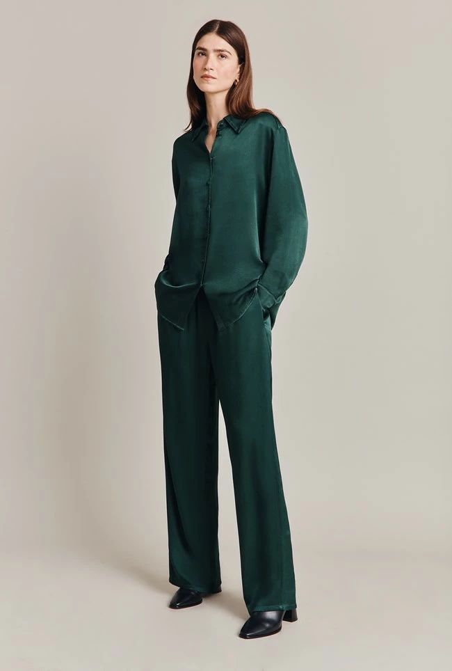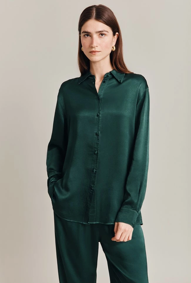 A satin shirt is a must for any smart wardrobe. Crafted from our signature Eco Vero Satin, in an array of colours – Ellie features front placket buttons, a classic collar and cuff detail. Wear yours with our Imogen trousers or our Luna skirt for a full outfit.