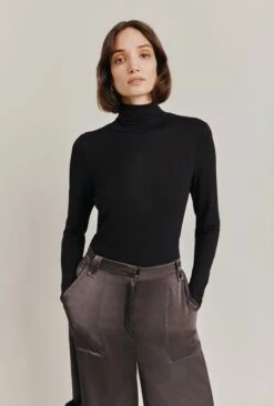 Perfect for extra coverage in the cooler temperatures, Fern is our turtleneck top crafted from our luxuriously soft against the skin fine knit rib. With long sleeves Fern is perfect for layering and pairing to complete your favourite looks this season.