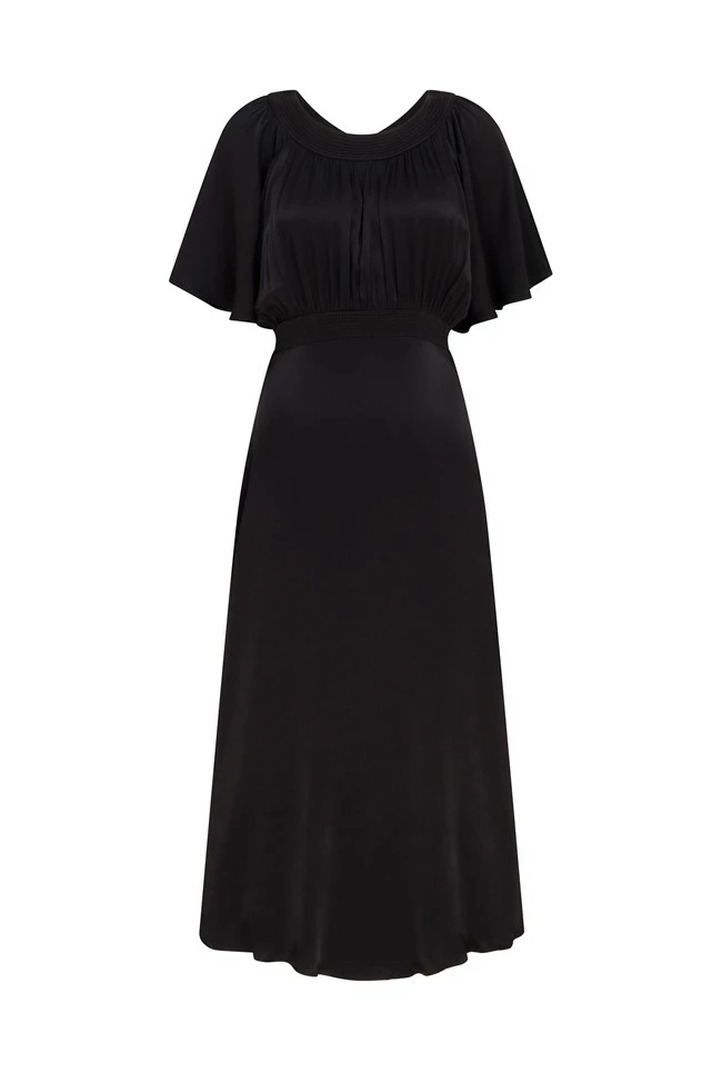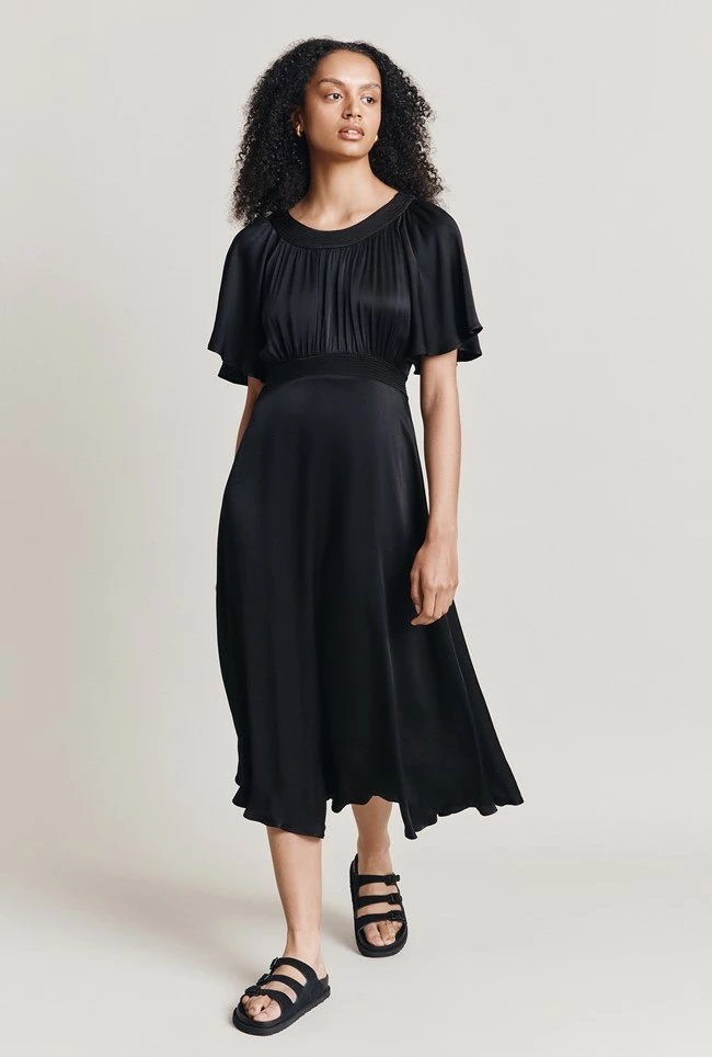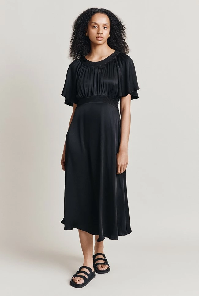 Sleek and simple, our Flora Dress is a classic midi crafted from signature filament satin, in a gorgeous rusty red it features a flattering waist belt. Angel sleeves and an elegant round neckline make this dress perfect for dressier occasions. From cocktail parties to weddings – this is a wardrobe staple.