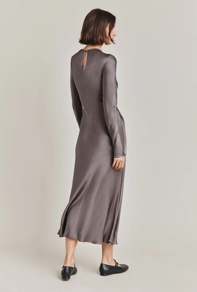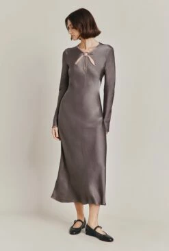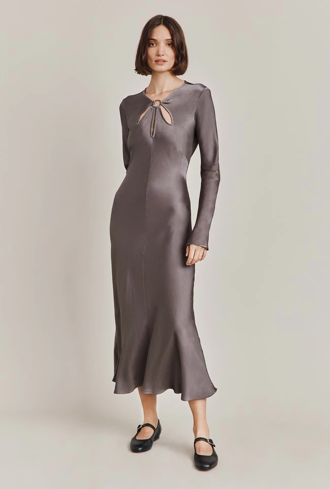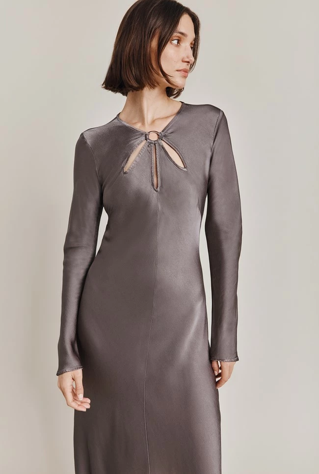 We love this simply yet stunning style crafted from our sustainable Ecovero in in grey. With long straight sleeves, Freya is a classically elegant midi dress with gorgeous cut-out detail just below the neckline. Wear yours with your favourite heels and a signature clutch bag.