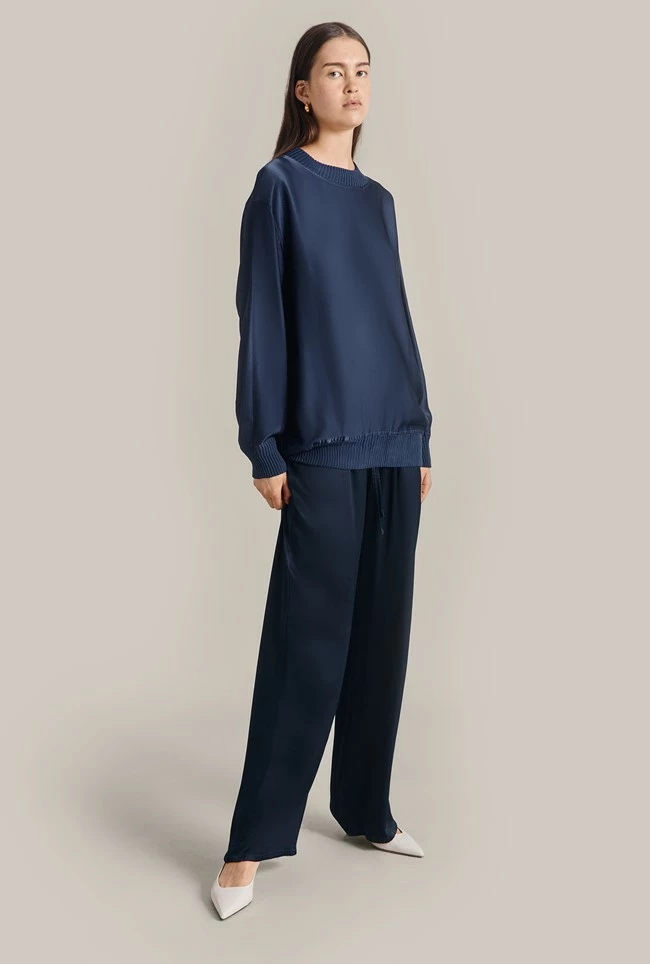 Oversized and crafted from our sustainable Eco Vero satin, Grace is an on-trend sweatshirt choice, with ribbed neckline, hem and cuff detail. Layer over a plain tee and pair with trousers, jeans or a midi skirt.