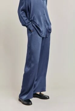 For flattering trousers that ooze comfort, look no further than Imogen. Made from our fluid garment-dyed Eco Vero satin, these wide leg Palazzo-style trousers offers a looser fit and are perfect for colder days when you want a little extra coverage. With an adjustable drawstring waist and handy side pockets these trousers are made for functional comfort. Tuck in a plain white tee or match with our Ellie shirt or Jana cami.