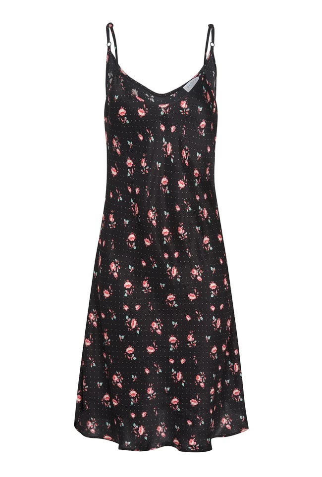 Feel extra fabulous when it comes to bedtime with our Iris slip. Short in length and made from lightweight satin, this scattered rose floral nightgown features delicate straps for a look that’s comfy and flirty at the same time. Perfect for those who prefer a looser fit, this slip will provide freedom of movement. Wear with a pair of fluffy slippers and our Alexa Robe and you have the perfect nightwear combo.