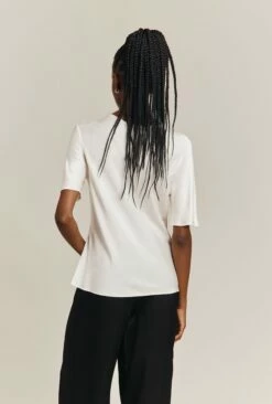 In an array of different colours, our Ivy top is crafted from our signature Eco Vero Satin fabric. Luxuriously soft and comfortable, Ivy features short sleeves and a round neckline. Style with jeans, trousers, skirts or shorts – this versatile top is a wardrobe essential.
