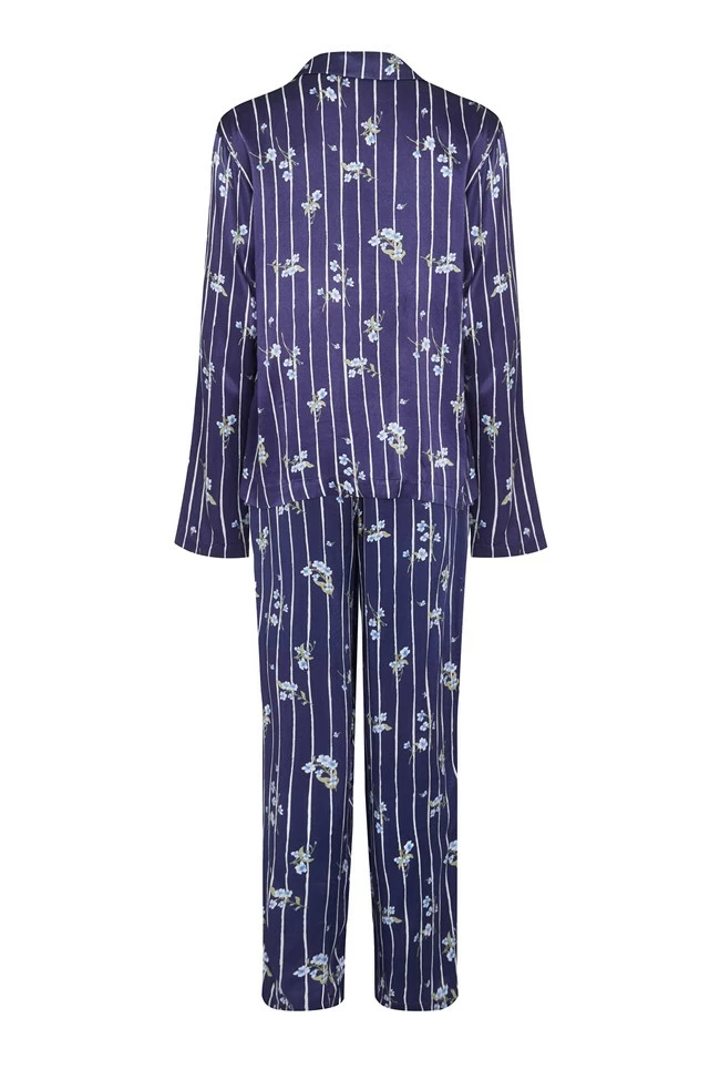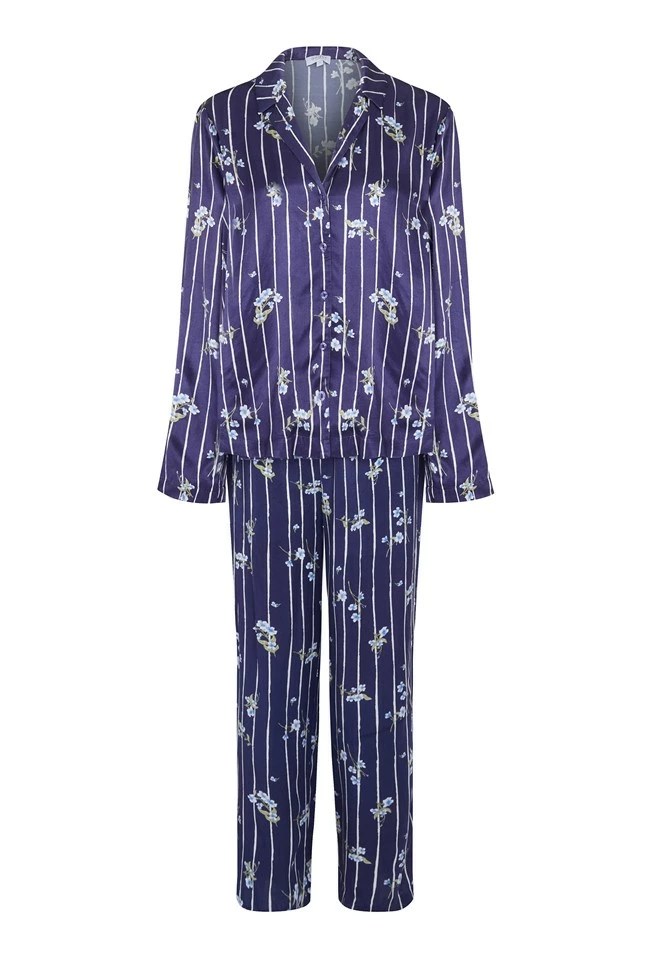 There’s never been a better time to treat yourself to extra some special nightwear. In scattered floral with a touch of pinstripe, slip into something soft and stylish with our Lara PJ’s. Made from smooth filament satin this nightwear set provides warmth and comfort thanks to its long-sleeves and straight-cut trousers. The elasticated waist ensures comfort, meaning it’s never been easier to get cosy with a good book and comforting warm drink.
