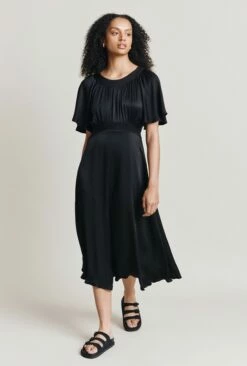 Mock wrap in style, Lua is a midi dress with plenty of feminine details. We love the midi length and the panelled pink tuck detail. Crafted from our luxury satin fabric, Lua drapes beautifully over the silhouette, and is sure to become your summer go-to for any occasion.