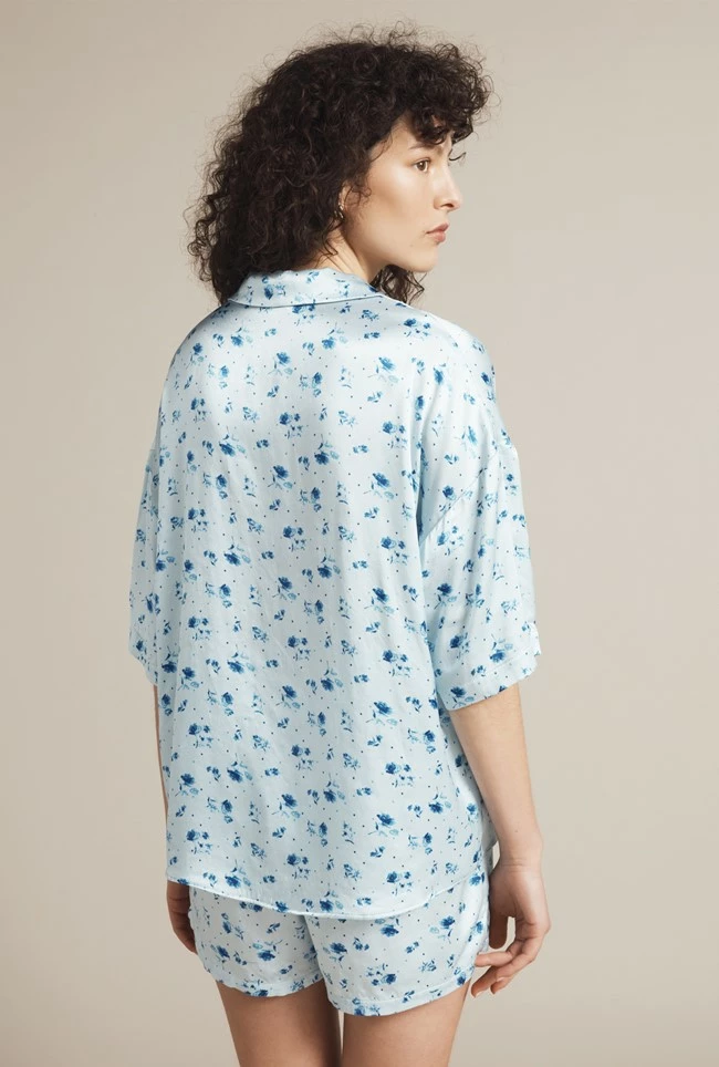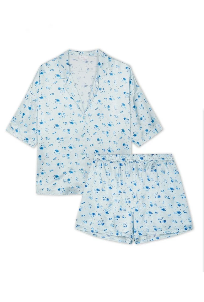 Printed with florals, the two-piece Lucy set is made from smooth and stylish satin for ultimate feel-good comfort. Featuring shorts with an elasticated waist and an easy fit shirt designed in an elegant, feminine style, this set will have you looking and feeling good all night (or day) long. All you need to complete the look is a pair of fluffy slippers or cashmere socks.