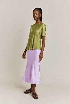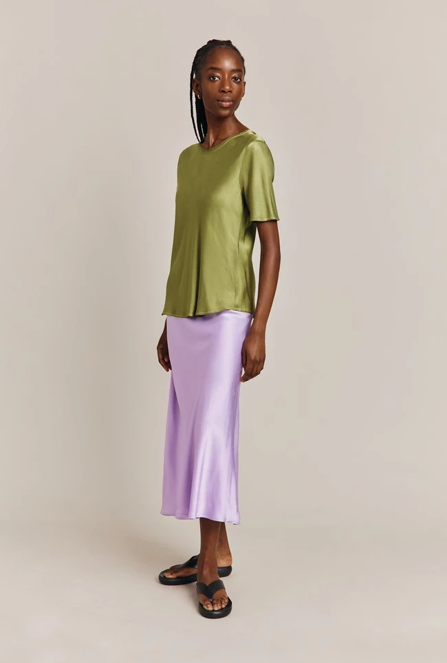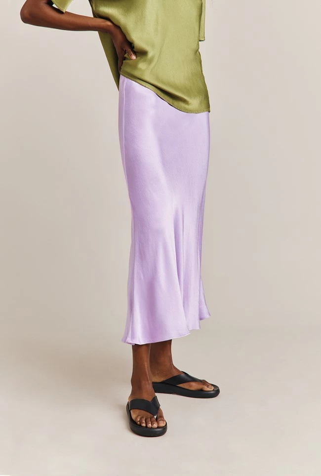 If you only have one skirt in your wardrobe, make it Luna. A true classic, this simple skirt is cut on the bias in a midi length and crafted in garment-dyed satin so it falls fluidly over the body to create a flattering, form-fitting silhouette. A subtly elasticated waistband ensures comfort. Dress up with a satin camisole and heels, or down with a simple tee, denim jacket and trainers – versatility is Luna’s superpower.