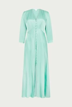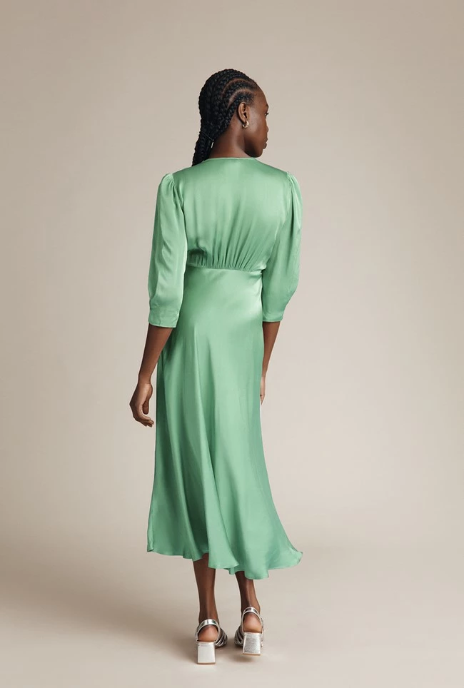 If you need a simple yet striking showstopper outfit, look no further than our Madison dress. Cut from sustainable EcoVero heavy satin, this vintage-inspired style features puffed shoulders, fabric covered buttons and three-quarter length sleeves. With a classic silhouette and front split detail, this ultra-feminine dress will endure season after season – plus it would also make the perfect bridesmaid’s dress.