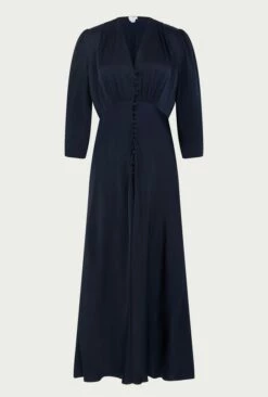 If you need a simple yet striking showstopper outfit, look no further than our Madison dress. Cut from sustainable EcoVero heavy satin, this vintage-inspired style features puffed shoulders, fabric covered buttons and three-quarter length sleeves. With a classic silhouette and front split detail, this ultra-feminine dress will endure season after season – plus it would also make the perfect bridesmaid’s dress.