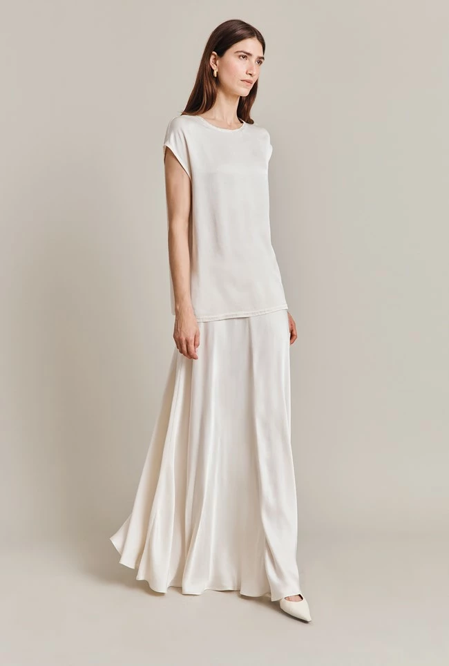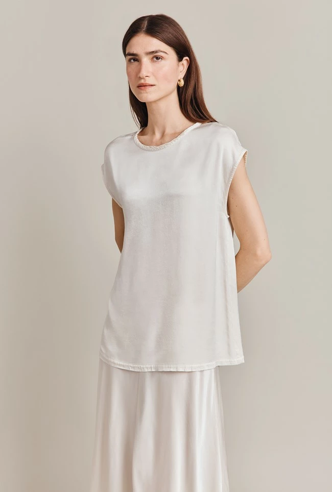 We loved this capped shoulder style on our Melody Top. Crafted from soft satin, she features a round neckline and has a rear keyhole and button fastening. Wear yours with jeans, trousers, or our Adrianna Skirt – the style possibilities are endless.
