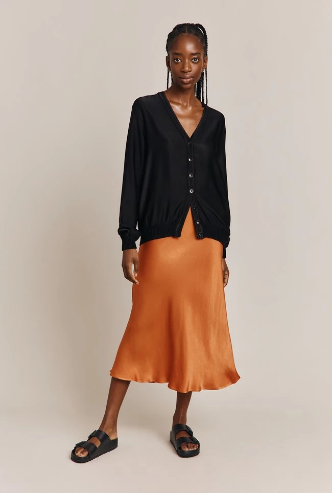 Bomber jackets are always on-trend, and our Mia Bomber in black is as stylish as they come. Made using our sustainable Eco Vero satin that’s soft to the touch, Mia provides both comfort and style. With front buttons and an elasticated hemline that hugs the figure and matching cuffs, Mia will pair perfectly with our Aurora trousers or jeans.