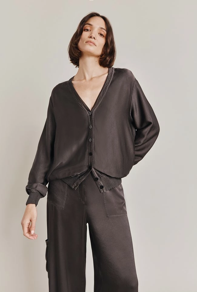 Bomber jackets are always on-trend. Made using our sustainable Eco Vero satin that’s soft to the touch, Mia provides both comfort and style. With front buttons and an elasticated hemline that hugs the figure and matching cuffs, Mia will pair perfectly with our Aurora trousers or jeans.