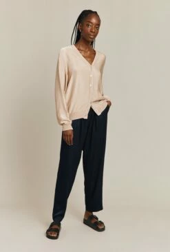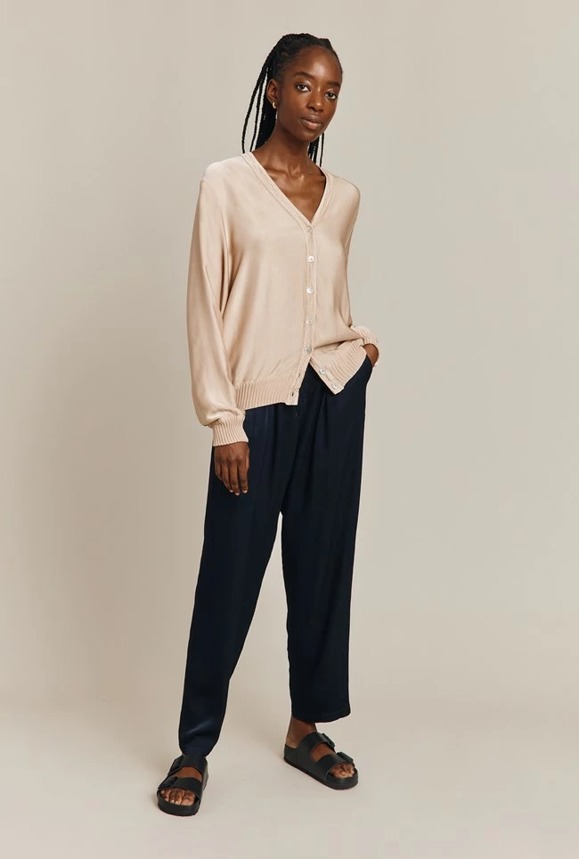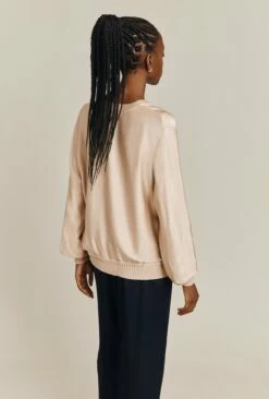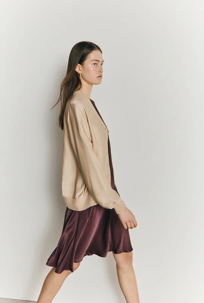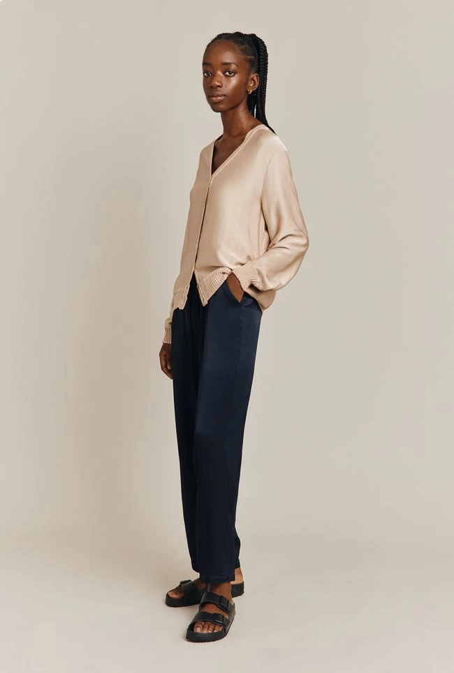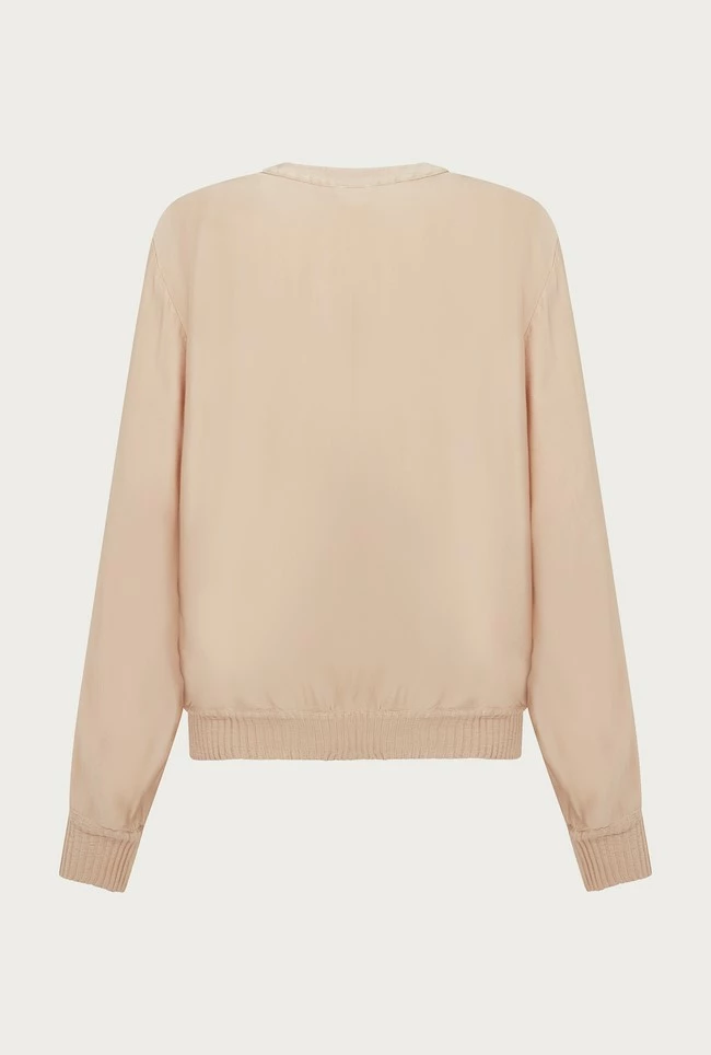 Bomber jackets are always on-trend, and our Mia Bomber in stone is as stylish as they come. Made using our sustainable Eco Vero satin that’s soft to the touch, Mia provides both comfort and style. With front buttons and an elasticated hemline that hugs the figure and matching cuffs, Mia will pair perfectly with our Aurora trousers or jeans.