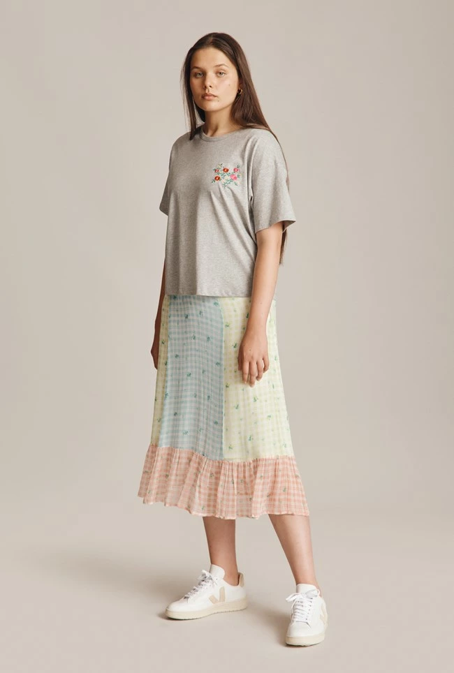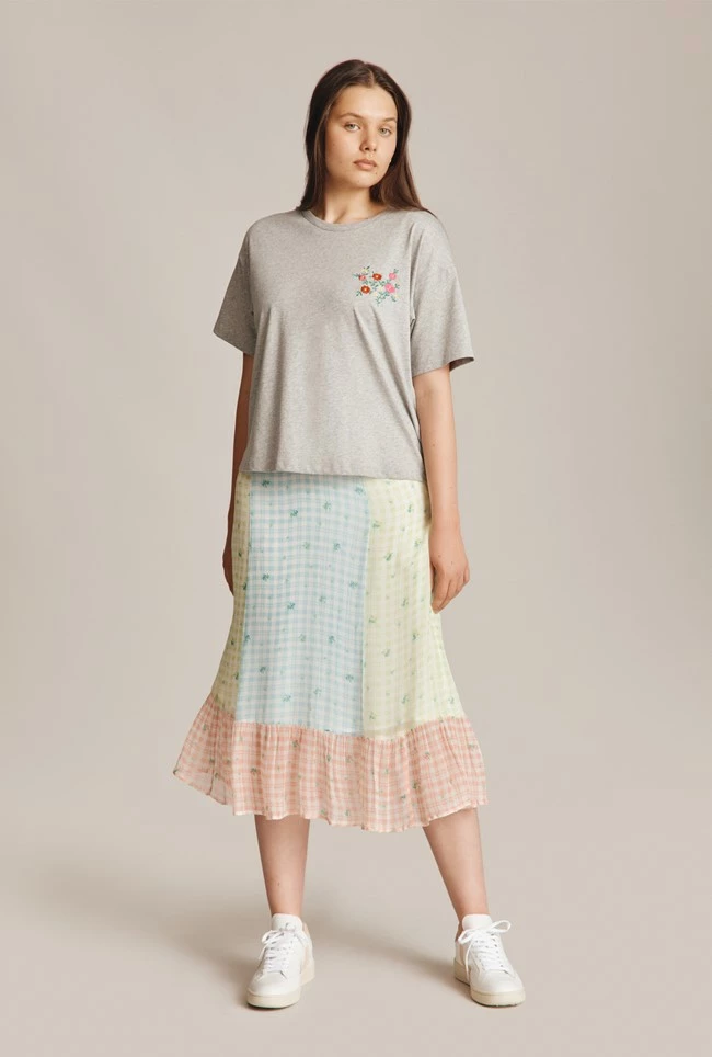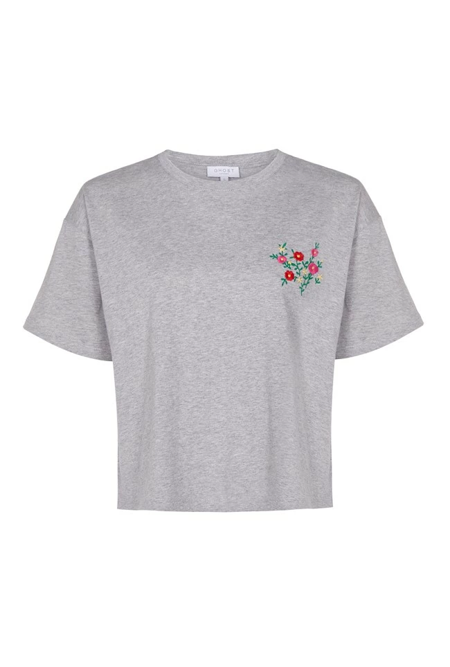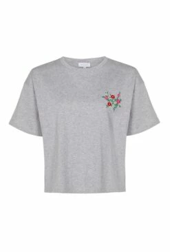 For a relaxed off duty look, you’ll love our cropped grey marl Mia T-Shirt featuring an embroidered floral logo. With dropped shoulders and a round neck, this T-Shirt boasts a looser boxy fit that will make for the perfect casual look when paired with jeans or a midi skirt.