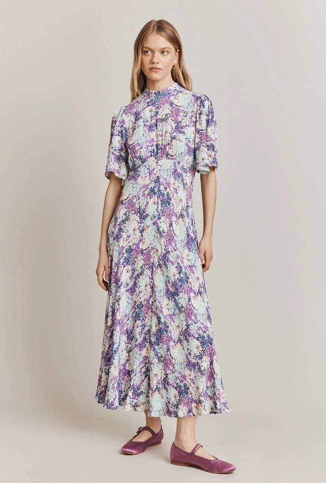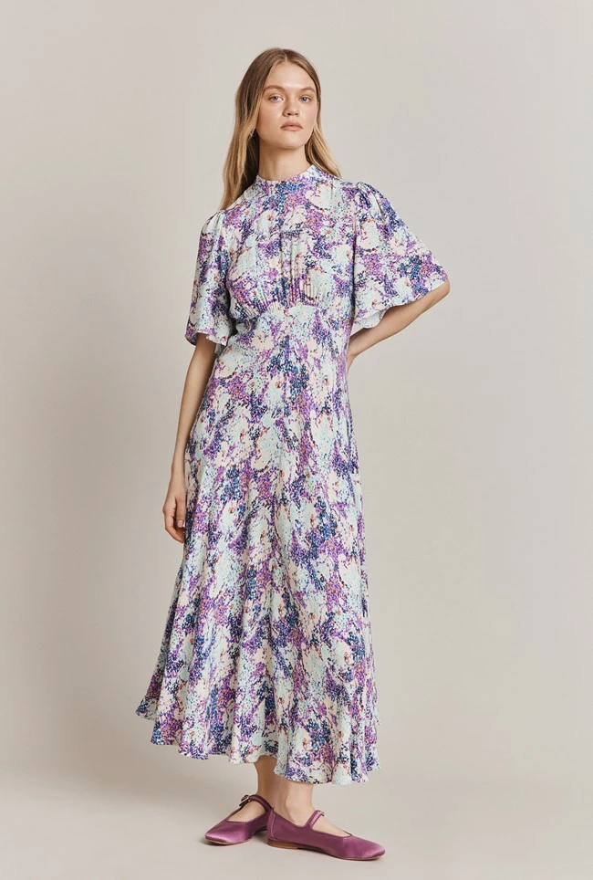 With delicate angel sleeves, Penny is as pretty as it gets. Midi in length and cut on the bias, Penny skims the body beautifully with a fit and flare style. Comfortable and easy to wear, thanks to its side zip and keyhole back with covered button, you’ll want to wear Penny everywhere – note also high-collared neckline.