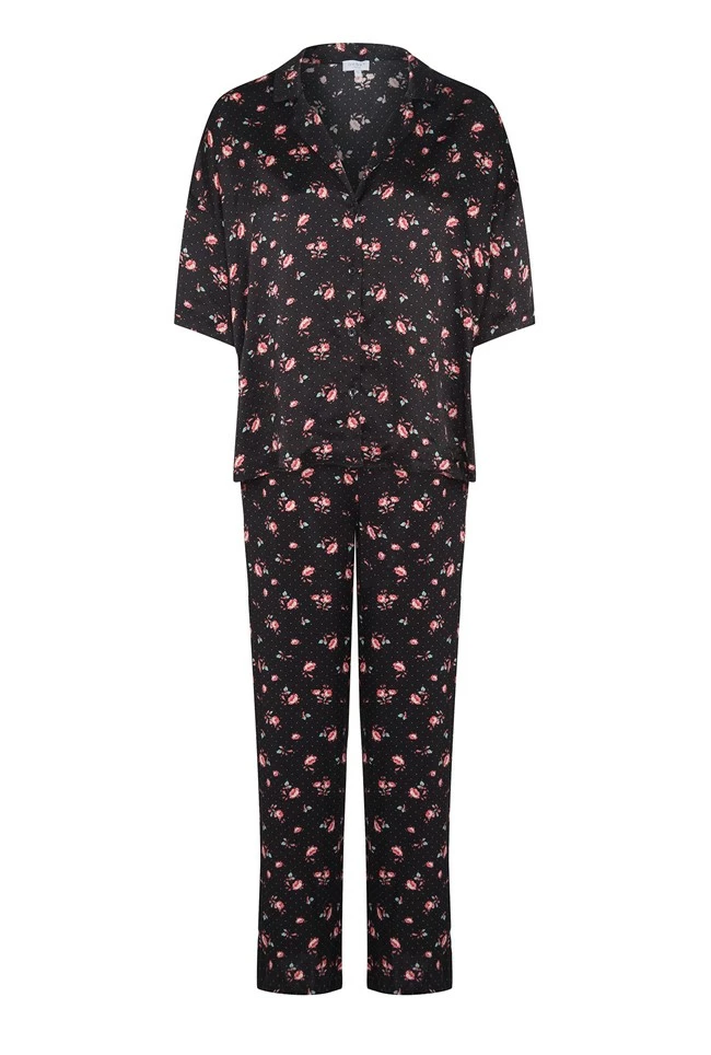 Make your bedtime routine feel a little more luxurious and slip into our floral Penny pyjamas crafted from smooth satin. Featuring a striking floral print throughout, this set provides an elegant fitting, short-sleeved shirt and matching straight cut trousers with an elasticated waist. Pair with your favourite slippers and your night-time look is complete.