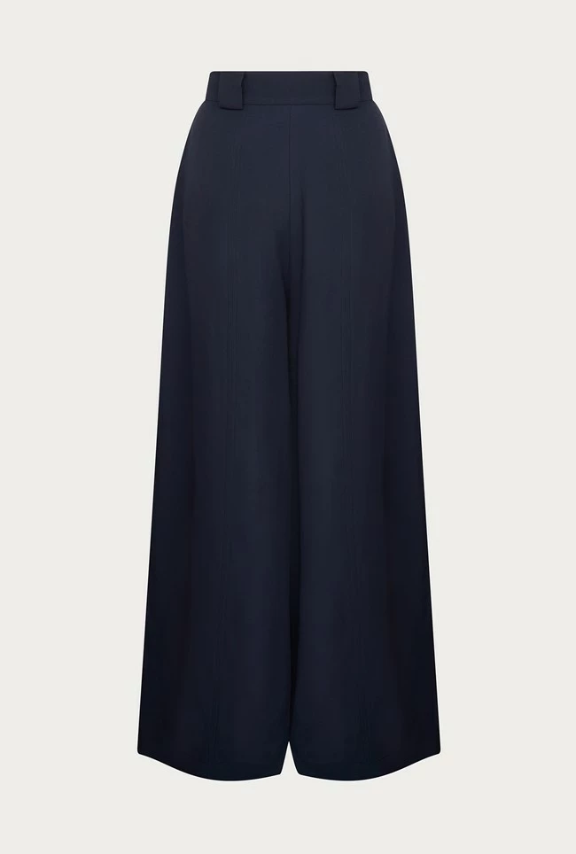 Luxurious satin crepe trousers donโt get better than this. In classic navy, our Penny trousers offer a flattering wide leg style with double button detail and zip fastening. Pair with a plain white tee, a cami or even a shirt โ the possibilities are endless.
