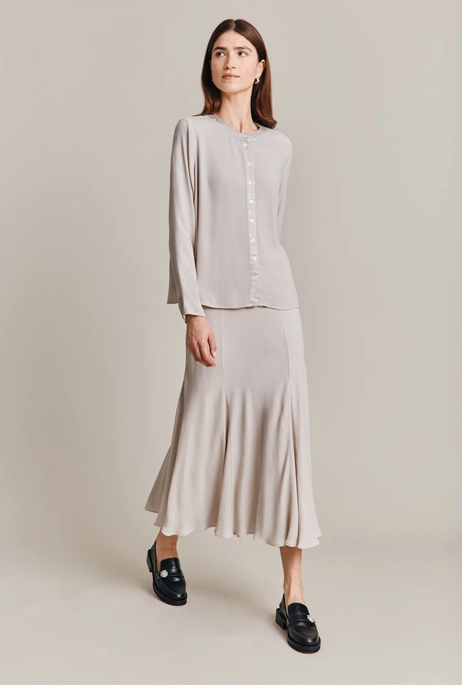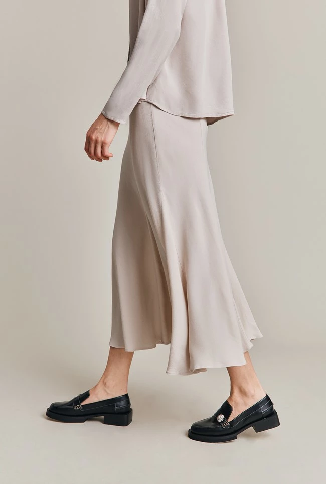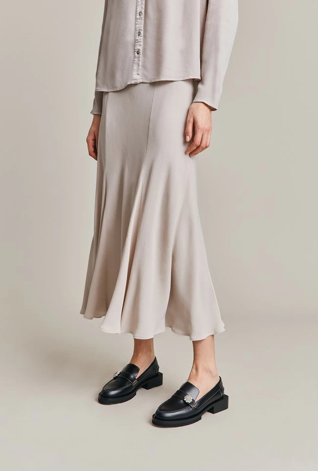 For a full and floaty summer skirt, you’ll love Phoebe. With godet front panels to increase movement in the skirt, Phoebe is crafted from our signature crepe. High waisted for a sleek, figure hugging style, pair yours with a tighter top to accentuate the skirts volume or with a loose t-shirt for a casual style.