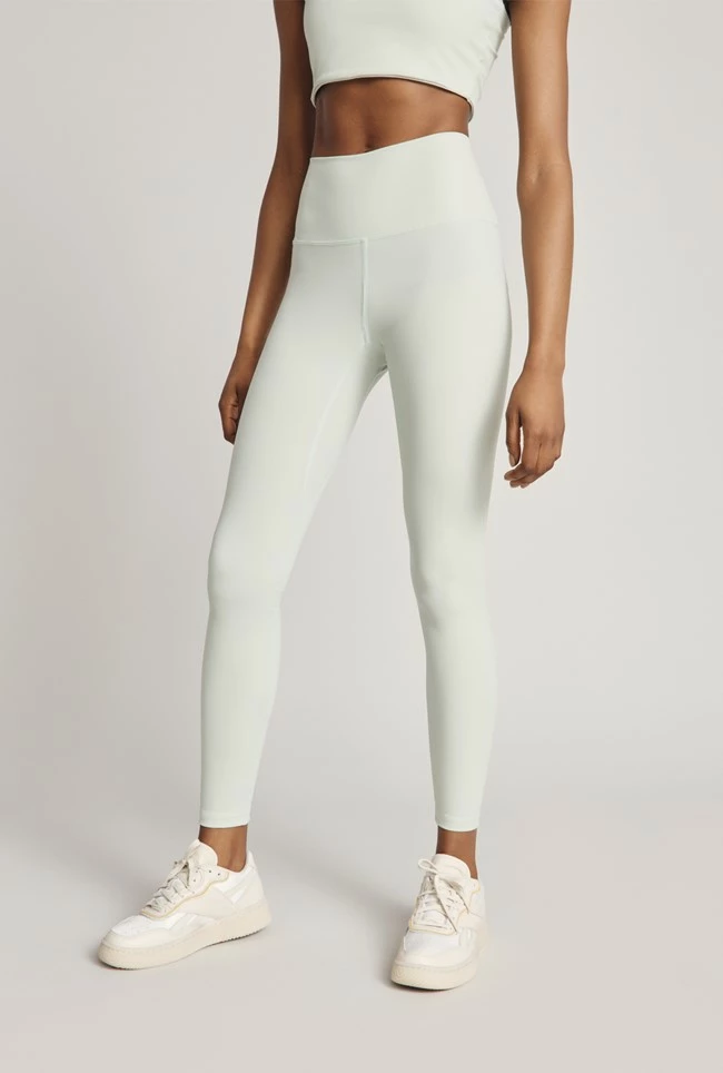 Perfect for low impact workouts or simply running errands, our breathable soft jersey leggings in mint green feature a deep high-waist band that not only provides comfort and support but is also figure flattering. With saddle stitching to stop seams cutting into the skin, these full-length leggings won’t only feel great but look great too. Pair with our racer bra and grab your sneakers.