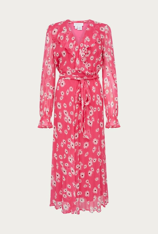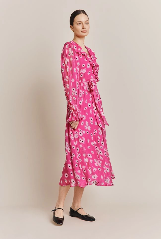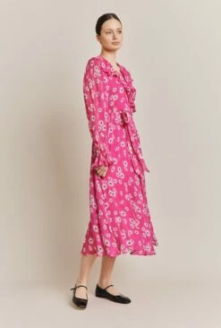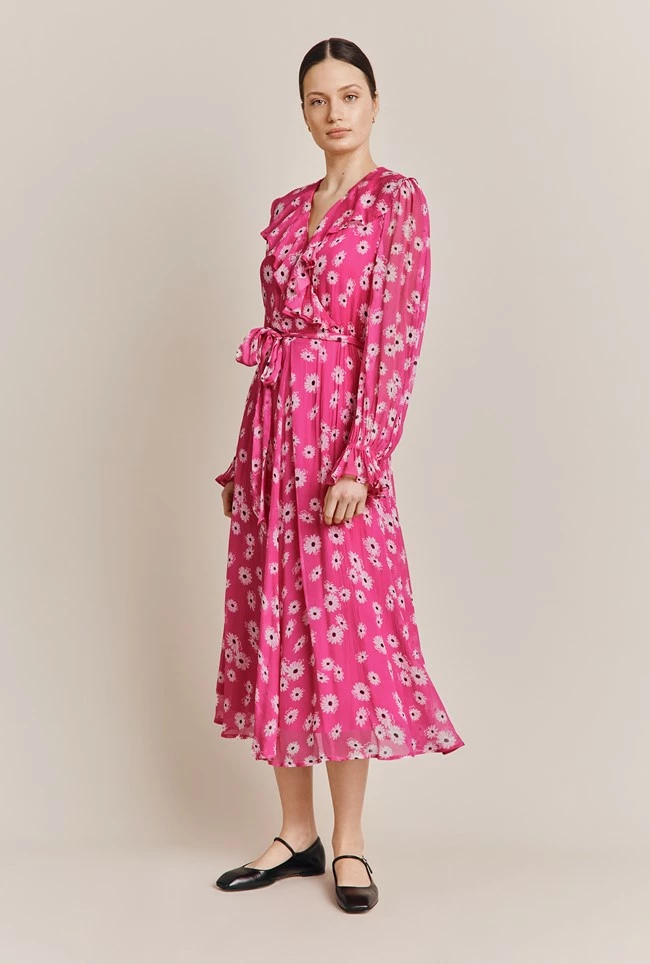 There’s something magical about Su – our bohemian style wrap dress that we know will become your new favourite. The combination of crinkly georgette fabric printed with pink daisies, ruffled neckline and an ankle-grazing hemline makes for a powerful combination that will leave you feeling ethereal every time you wear it.