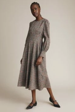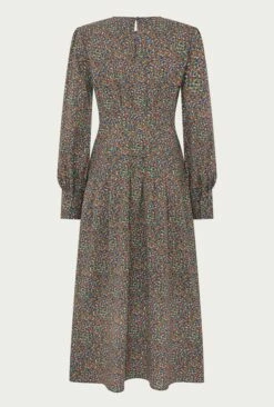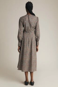 Fresh floral prints are the perfect springtime look. Crafted from cotton stretch in an orange ditsy print, Tabatha has a corseted pin tuck waist that will cinch in your figure beautifully. A fitted style that’s midi in length, the dress also has a round neckline and long sleeves with deep cuffs. The keyhole button at the back makes sure the detail continues and a side zip makes dressing easy. Pair with boots of loafers and layer over a denim jacket.