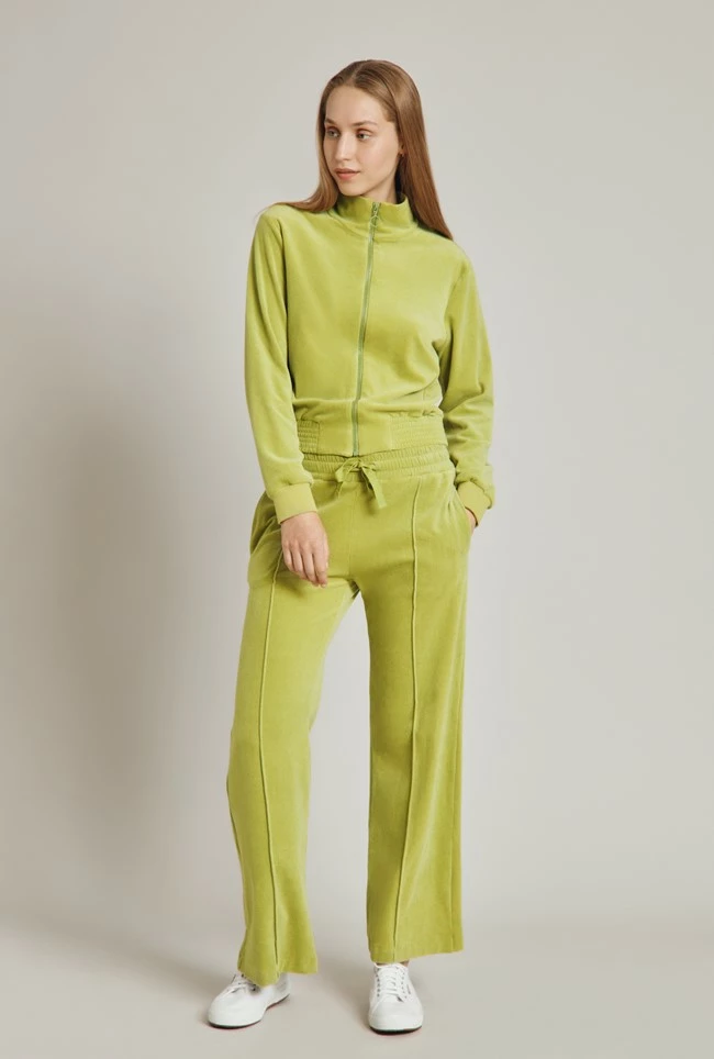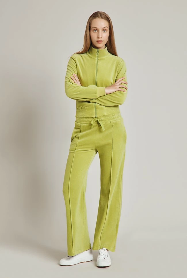 The perfect partner to our velour track top, our velour trousers are the ultimate addition to your loungewear wardrobe. An elasticated waist with a grosgrain drawstring assures maximum comfort, while the loose, wide-cut legs make for a flattering fit. Pair with trainers for a luxe off-duty look.